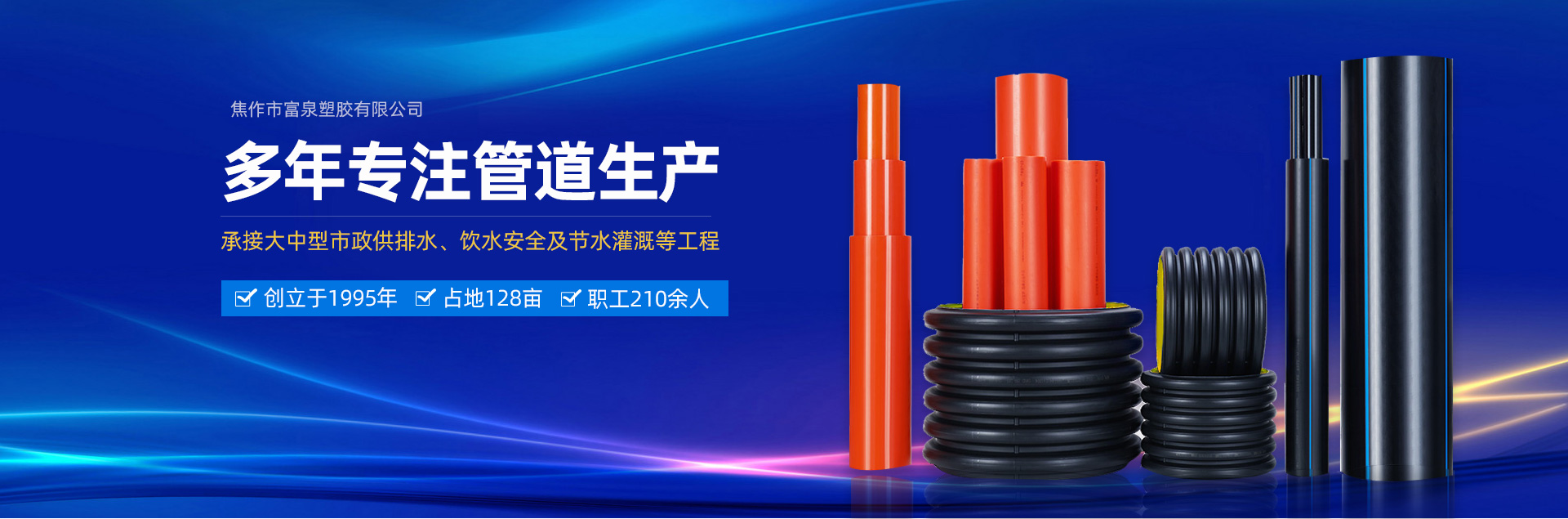 - 焦作市富泉塑胶有限公司,创立于1995年,是一家集研发、设计、生产、销售为一体的大型管材企业。公司位于太极故里、黄河之滨一一河南焦作温县。公司占地128亩,现有职工210余人,其中具有中技术职称的19人。生产、检验设备58台(套),包括PVC实壁管生产线11套、PE实壁管生产线12套、HDPE双壁波纹管生产线6套、PVC双壁波纹管生产线5套,检验设备14台(套)。主要产品有:Φ20mm-630mm、各种压力规格的PVCU、PVC-M、PE给水管材,PVC-U节水灌溉管材,HDPE燃气和矿用管材,DN200-800mm的HDPE、PVC双壁波纹管及各种喷灌、滴灌工程材料。承接大中型市政供排水、饮水安全及节水灌溉等工程。 富泉塑胶公司重视产品的质量、安全、环保和节能,在同行业中率先完成了“新华节水产品认证”,全方面通过ISO9001:2008国际质量管理体系、IS014001:2004环境管理体系和OHSAS18001职业健康安全管理体系的一体化导入,并建立起规范的现代企业管理体系。公司以“质量”为先导,采用质量跟踪、多环节把关的方法,组建具有行业水准的企业技术检测中心,常年委托水利部节水灌溉设备检测中心、河南省产品质量监督检验院对产品跟踪检测,并由中国人民保险公司承保产品质量。公司连续多年被河南省水利厅确定为“安全饮水设备、节水灌溉设备”定点生产企业,并获得“中国名优产品”“质量、服务、信誉AAA企业”“河南省**产品”“河南省水利企业”“河南省守合同、重信用企业”等荣誉称号?! 「蝗芙汗炯岢帧坝没稀钡姆窭砟睿て谝岳?,全方面关注客户价值,不断提升服务水平。服务队伍常年为客户的产品设计、施工、安装提供合理的方案和全程细致、周到、**、快捷的技术服务。公司自成立以来,一直坚持以人为本的宗旨,塑造企业形象,并致力于新产品的开发,凭借雄厚的技术开发能力,先进的工艺制造流程,严格的质量管理保证体系,优良的售后服务网络,已成为河南省大的饮水、灌溉及排水管材设备制造商。产品畅销全国,而且还以公司雄厚的综合实力在业界中占据着重要的地位。